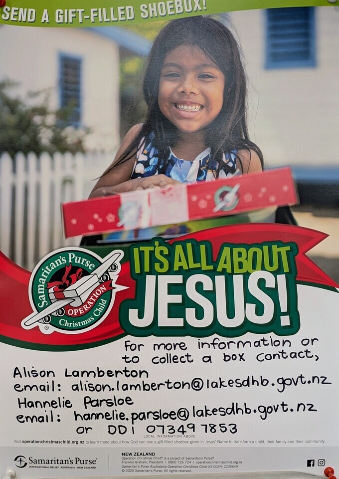 3. Drop off – bring your filled shoebox to the Chaplaincy office by the 15th October.